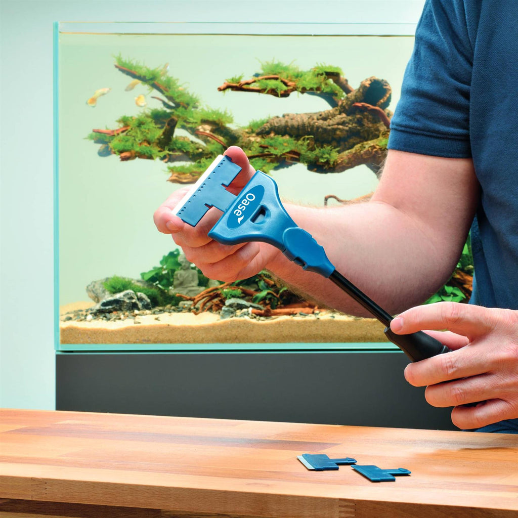 The cleaner is easy to grip and lightweight, making cleaning simple and hassle free. The heads glide across the glass and effectively removes the algae and dirt attached to the glass walls. The cleaning heads are interchangeable with the choice of a blade or simple scraper attachment. These additional accessories are simple to fit on and can be easily removed for cleaning.