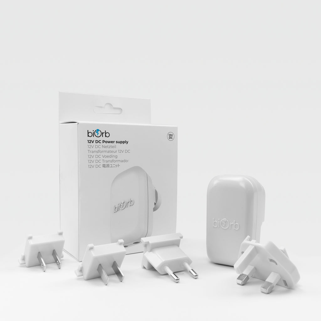 The Transformer has 2 sockets to plug your biOrb air pump and LED lights into. 3 different plug adaptors are provided allowing for use around the world.