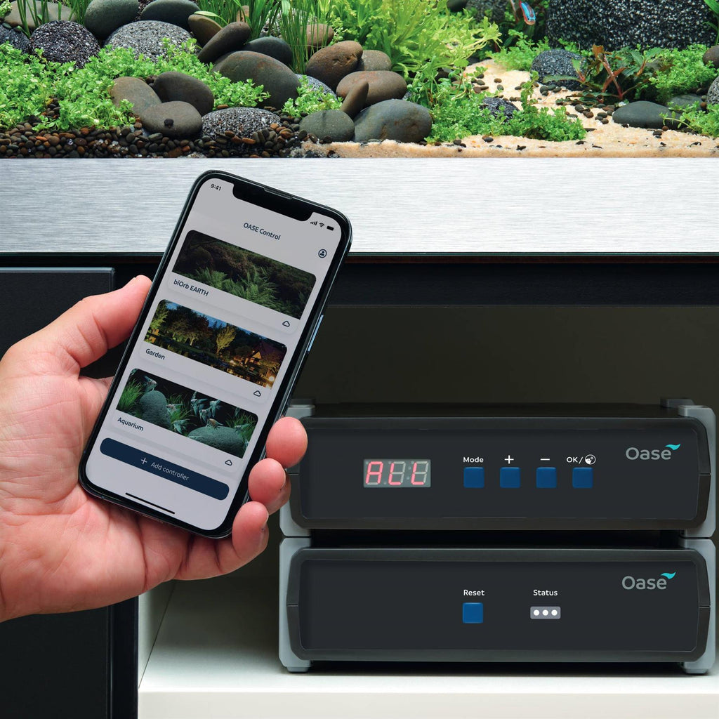 The EAC Controller allows for up to 5 compatible devices to be added to the box that can be controlled via the Oase Cloud App from anywhere in the world.