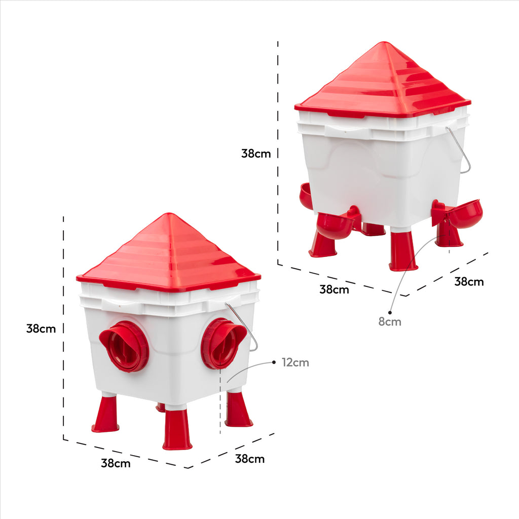 Constructed from durable, food-grade plastic, this set is built to withstand daily use in backyard coops or small farms. With its large capacity, easy-to-fill design, and simple assembly, this feeder and drinker set saves you time and effort while providing your flock with a consistent, hygienic supply of food and water.