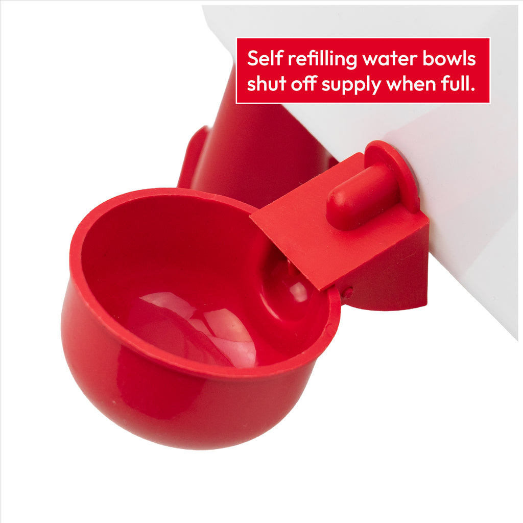• Elevated, Hygienic Design - The raised stands keep both the feed and water clean by elevating them above ground level. This prevents contamination from dirt, droppings, and bedding, promoting better health and hygiene for your flock.
