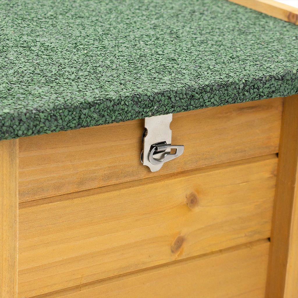 The KCT Oslo Hedgehog House is the perfect haven for your hog friends. The solid wooden structure acts as a safe nesting area for hedgehogs to rest, hibernate, and call their home. featuring an easily accessible door and a dividing wall inside the unit - providing ample room to fill your hogitat with bedding or food. The waterproof shingle felt roof can be removed with ease to check on your hog and can be secured down again using the latches located on either end of the hedgehog house.