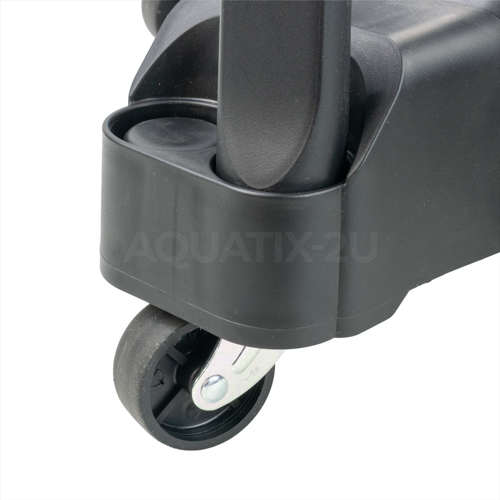 The pond cleaner has 4 wheels and a handle making it easy to maneuver around the garden as required. The top of the vac easily removes from the tank which makes cleaning easy. It has 3 different nozzle attachments including a universal nozzle, a cleaning nozzle for mud and sludge which avoids taking in gravel and a crevices nozzle for any gaps and edges.