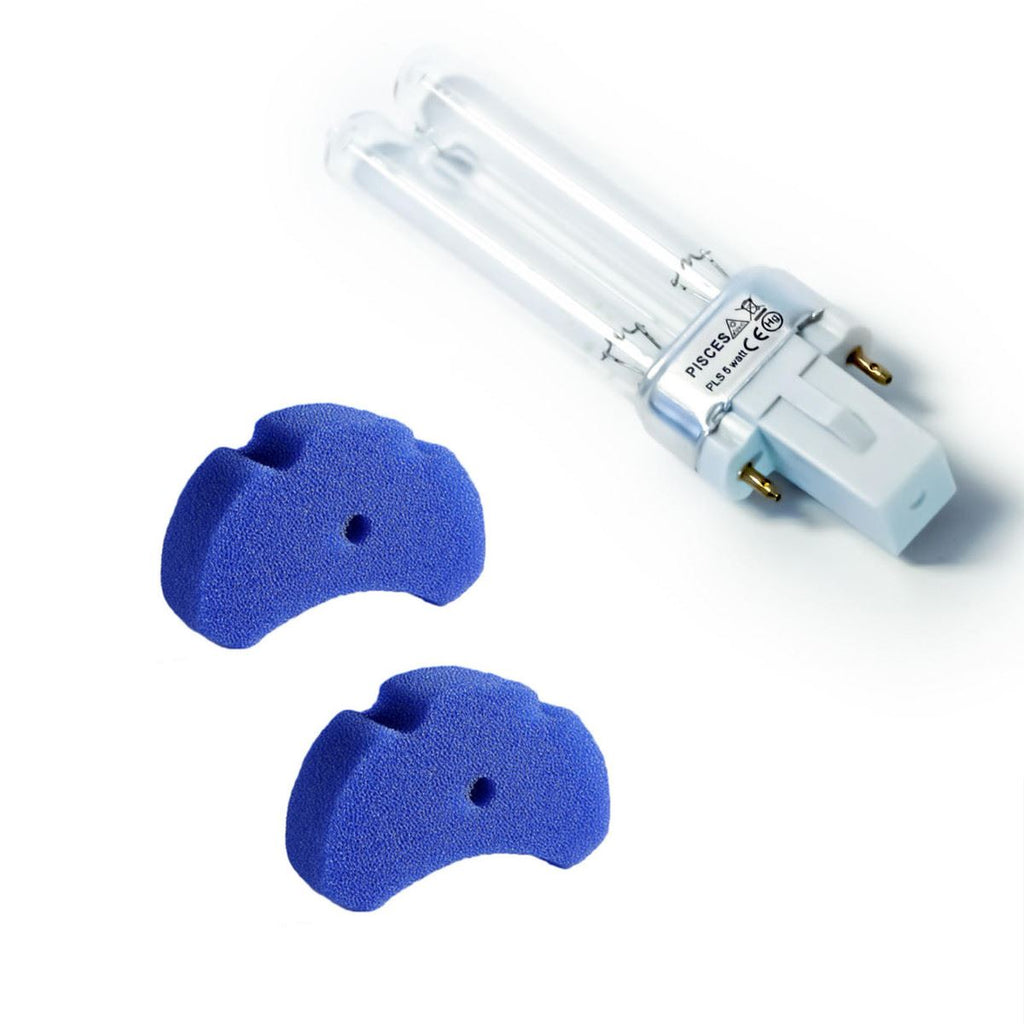 Included in this set is the relevant foams and UV tube for the Hozelock Easyclear 3000/3000 LV. The set includes a 5 Watt PLS bulb and 2 x Easyclear replacement foams.