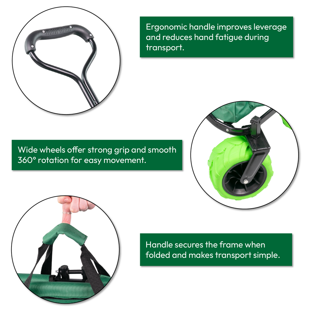 • Easy Transport - Perfect for transporting goods for gardening, fishing, festivals, camping, beach trips and day trips. Can be easily folded down when not in use and stored away