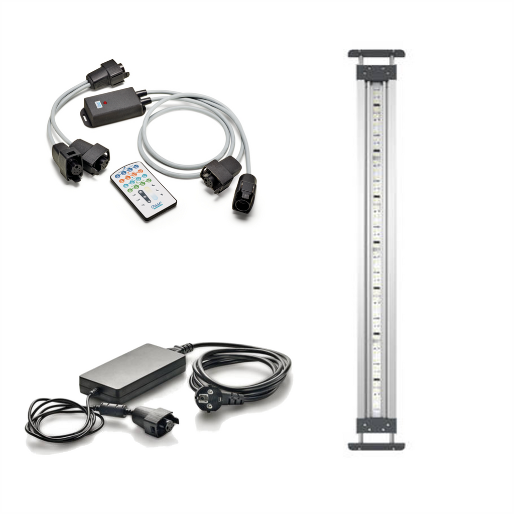 The Oase MotionControl LED sets delivers a broad colour spectrum and simulated natural sunlight which promotes healthy plant and livestock growth. The Oase MotionControl LED lights can be adjusted as desired with the EAC Aquarium Controller (Part 33885 – not included), to give your aquarium the lighting that it deserves.